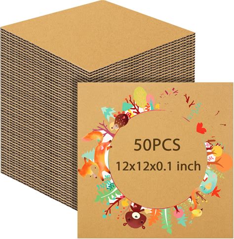 50PCS 12X12 Corrugated Cardboard Sheets 2.5mm Thick Flat Cardboard Sheets Corrugated Packaging Pads Paper For Crafts, Packing, Shipping, Moving,