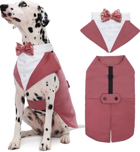 Kuoser Dog Tuxedo Dog Suit And Bandana Set, Dogs Tuxedo Wedding Party Suit, Doggy Prince Bow Tie Shirt Formal Pet Wedding Attire For Large Medium And
