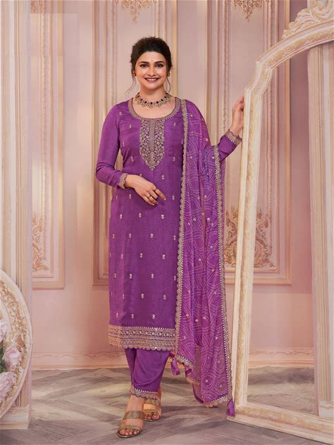 Purple Embroidered Silk Semi-Stitched Pakistani Salwar Suit - Silk-Salwar-Kameez