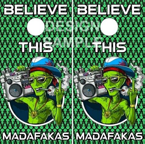 Alien Smoking Middle Finger Cornhole Wrap Bag Toss Skin Decal Sticker. Red. Cornhole Bag Toss.