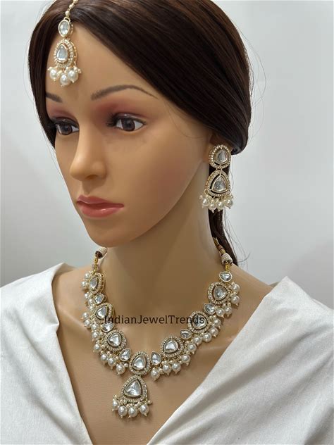 Aalia Bridal Kundan Jewelry Set: Indian Wedding Necklace Earrings Tikka
