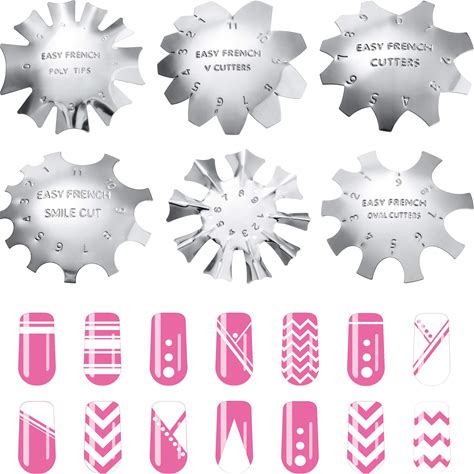 6 Pieces Nail Manicure Edge Trimmer Diy Plate Module, Stainless Steel Easy French Smile Line Gel Cutter Tool, Nail Acrylic Tool Kit (Silver)
