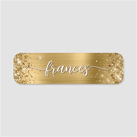 Glittery Gold Foil Handwritten Script Name Tag