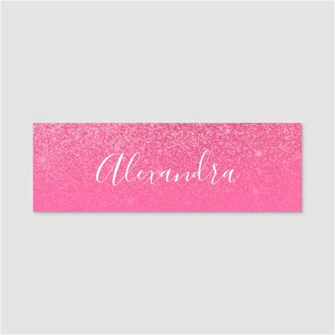 Glitter Girly Sparkly Rose Pink Script Name Custom Name Tag