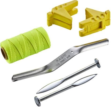 Ragni Bricklaying Accessory Pack 2, Masonry Tools Set With Solid Forged Line Pins, Nylon Braided Brick Line, Rubberised