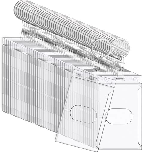 Marspark 50 Pack Keychain Card Holder Plastic Heavy Duty Badge Holder Vertical Clear ID Card Holder With Keyring, Rigid Fuel Card Protector With Thumb
