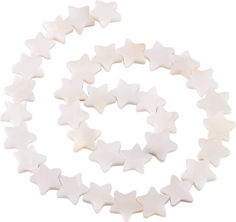 Fashewelry 38Pcs Celestial Star Natural Freshwater Shell Loose Beads Polished Five-Pointed Star Flat Spacer Beads Fully Drilled For Jewelry DIY Craft