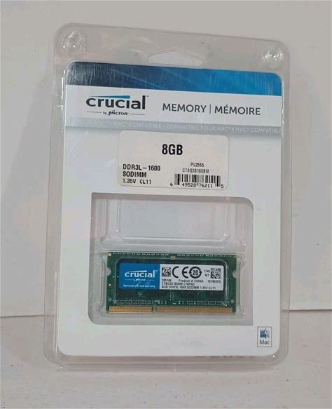 Crucial 8Gb Laptop Sodimm PC3-12800 1600Mhz 2Rx8 DDR3 DDR3L So-Dimm 1.35V CL11