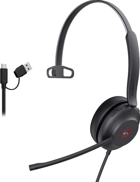 Yealink Usb Wired Mono Headset,Uh37 Computer Headset With Noise Cancelling Microphone,Usb-A & Usb-C Call Center Headset For Team