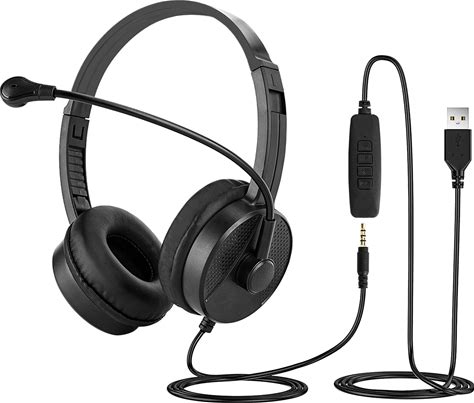 Geekria 3.5mm AUX Wired Computer Headphones With Noise Canceling Microphone USB Headset For Cell Phone Computer Office Home Call Center PC Headset In-Line