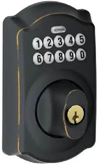 Schlage Residential Camelot Electronic Keypad Deadbolt C Keyway With 12287 Latch And 10116 Strike Aged Bronze By Sa BE365CAM716619