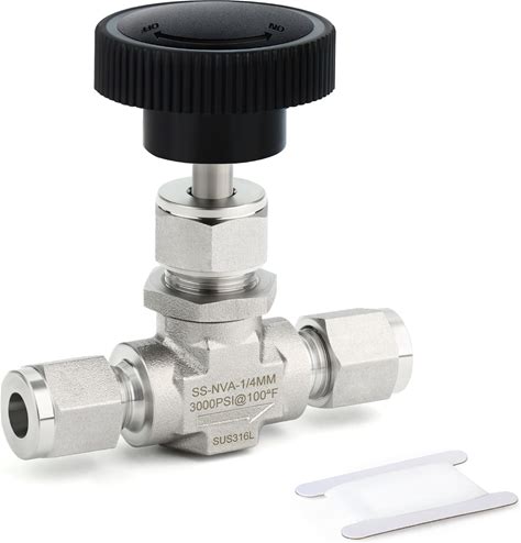 Hongbow Hardware Stainless Steel 304 Instrument Gas Needle Valve 1/4Inchtube OD Double Ferrule Compression Fitting 1000 Psi SS304 1/4Inch OD