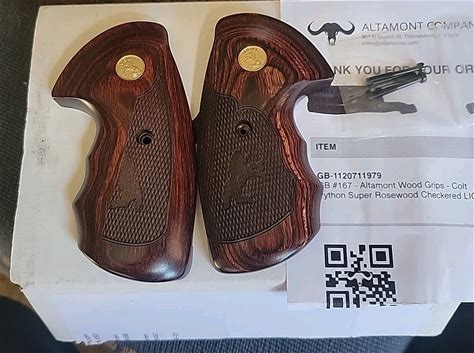 Altamont Wood Grips Colt Python Super Rosewood Checkered Gold Medals-Seconds. Colt. Rosewood. Pistol Parts.