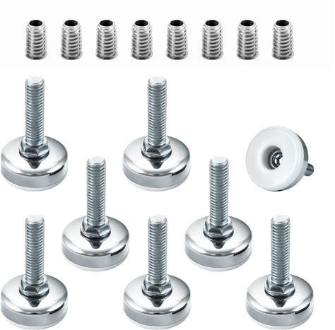 ZIUZI 4 Pcs Adjustable Furniture Feet, 3/8" Heavy Duty Threaded Furniture Leveling Feet, Leg Levelers Screw In With Threaded Inserts For Table,