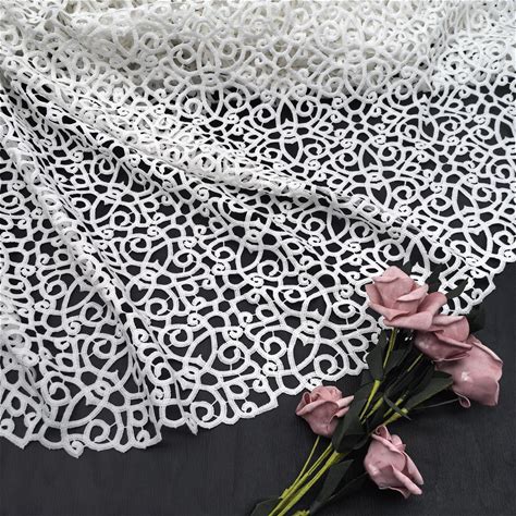 White Geometric Guipure Lace, White Tablecloth Lace, Bridal Lace, Crochet Style Design Lace Fabric, Delicate Embroidery Wedding Lace