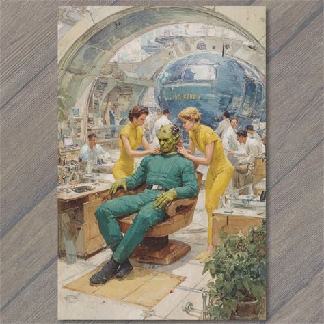 Art Print Alien Laboratory Transformation Green Humanoid Experiment