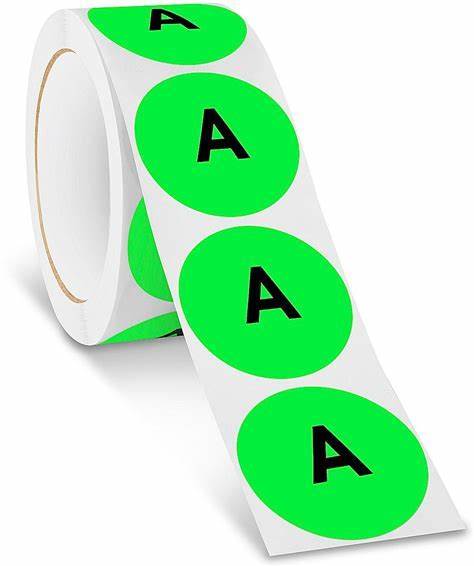 2" Circle Labels - "A", Fluorescent Green - ULINE
