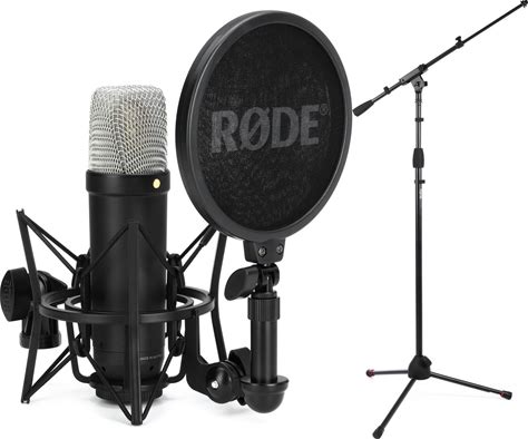 Rode NT1 5th Generation Condenser Microphone With SM6 Shockmount, Pop Filter, Stand, And Cable - Black Extremely Low-Noise Large-Diaphragm Cardioid