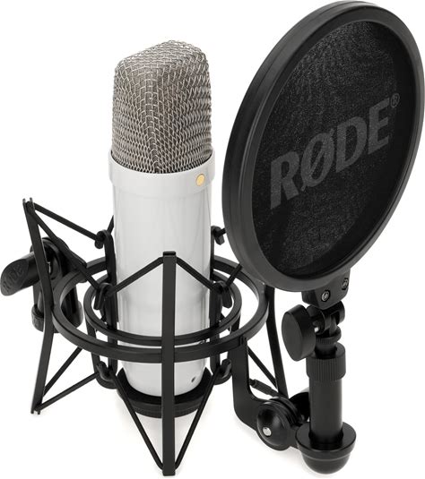 Rode NT1000 Large-Diaphragm Condenser Microphone Large-Diaphragm Studio Condenser Mic With Satin Nickel Finish And Internal Shock Mounting