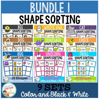 Shape Sorting Mats Bundle 1 - 9 Animal & Creature Themes Matching Activity