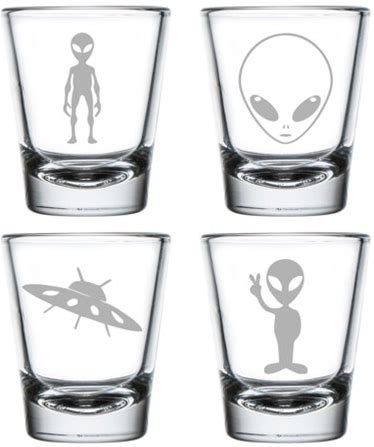 Set Of 4 Shot Glasses 1.75Oz Shot Glass Gift Alien Collection