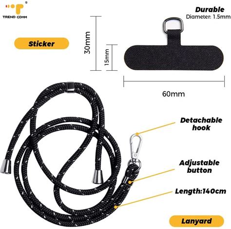 2-In-1 Phone Lanyard Strap With Wrist And Neck Rope - Detachable Patch And Metal Clip For Phone Case