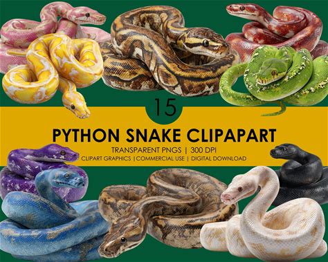 Realistic Python Snake Clipart: Jungle Animal PNG Bundle (Digital Download)