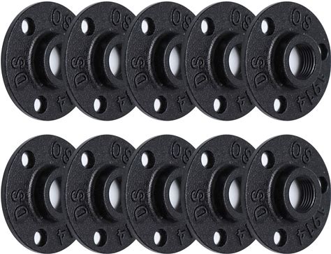 Niubid 10 Pack 3/4 Inches Malleable Cast Iron Pipe Flange, Industrial Pipe Flanges For Threaded Black Pipes And Fittings, DIY Steampunk Industrial