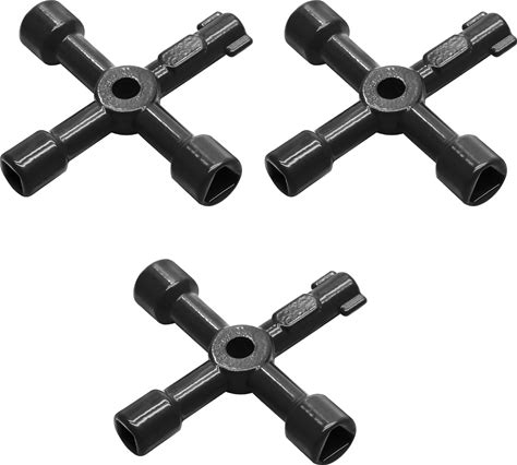 Jiozermi 3 Pcs 4-Way Multi-Functional Utilities Key, Plumbing Key, Triangle Square Wrench, Opening Key For Water Gas Electric Meter Box, Black