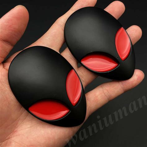 3D Big Black Metal Alienware Alien Head Ufo Car Emblem Badge Decals