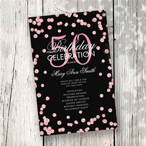 50th Birthday Program Rose Gold Glitter W/ Menu