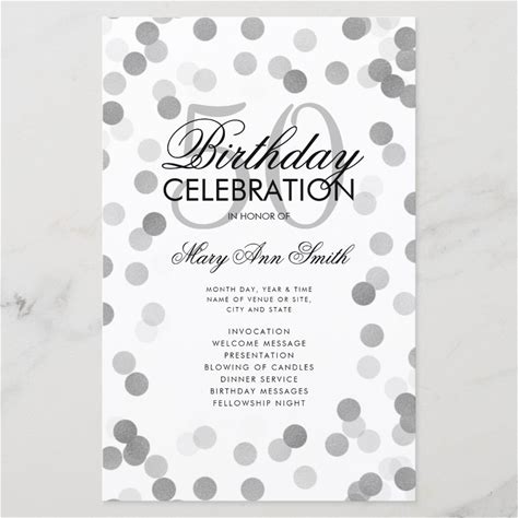 50th Birthday Party Program Silver Confetti Menu