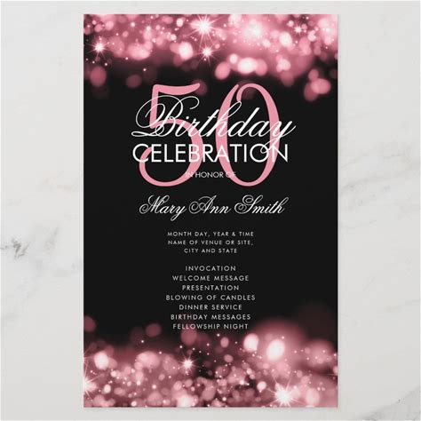 Rose Gold Lights 50th Birthday Menu Program