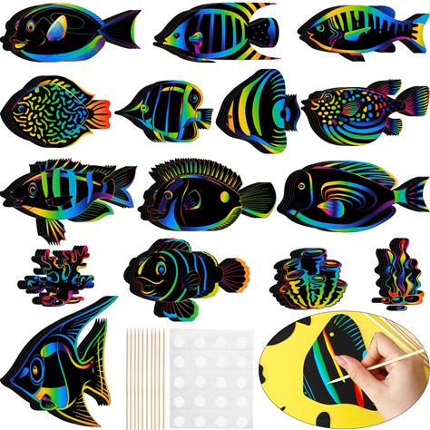 Liliful 60 Pcs Tropical Fish Scratch Cards Ocean Scratch Crafts For Adult Under The Sea Party Favors For Woman DIY Crafts Home Decoration Project