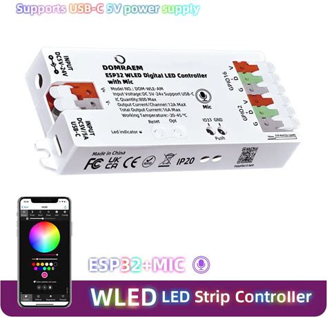 DOMRAEM ESP32 WLED Addressable LED Strip Controller With Mic UART Music Sync Dynamic RGB IC Wifi APP