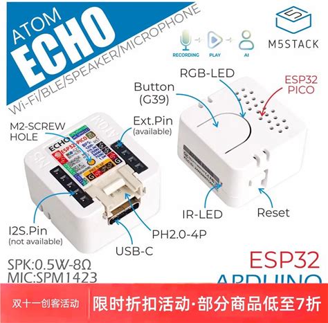 M5stack Official ATOM Voice Programmable Smart Speaker Lightweight Compact Smart Speaker Development