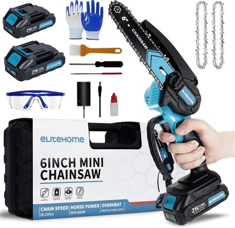 Elitehome Mini Chainsaw Cordless 2 Batteries 6 Inch Electric Portable Handheld Small Chain Saw Battery Powered For Tree Trimming Wood Cutting