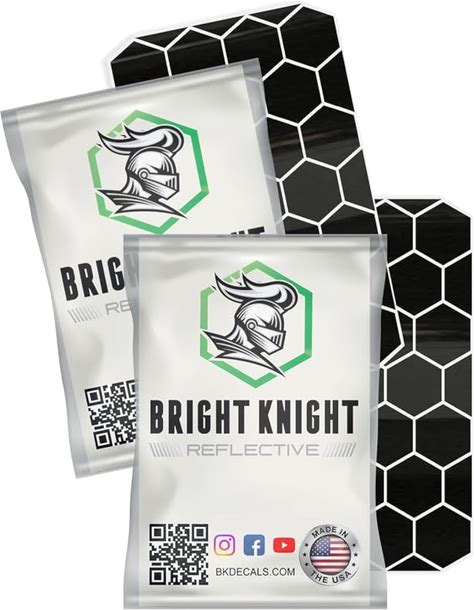 BRIGHT KNIGHT DECALS Hexagon Reflective Stickers For Helmet - Black, Pack Of 2, Motorcycle Helmet Stickers, 3m Waterproof Reflective Vinyl Tape For