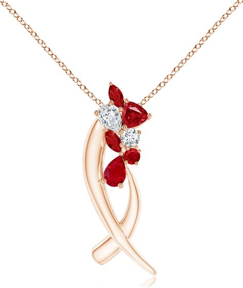 Natori X Angara 2.02 CTW Cascading Multi-Shape Ruby & Diamond Sumi Stroke Slider Pendant In 14K Rose Gold