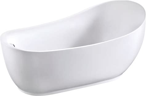 Kingston Brass VT7DE553423 Aqua Eden 55" Free Standing Acrylic Soaking Tub With Rear Drain Drain Assembly And Overflow Glossy White Tub Soaking