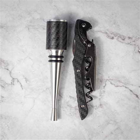 Farfalli Fibra Corkscrew And Stopper In Gift Box - Carbon Fibre