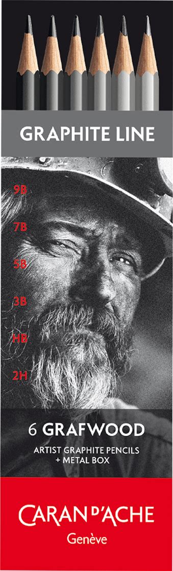 Caran D'ache Graphite Line Graftwood Pencil, Tin Set Of 6