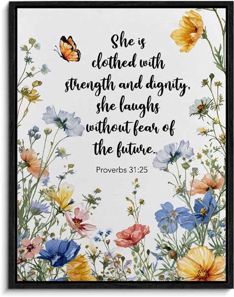 Christian Wall Art Inspirational Bible Verse Decor Proverbs 31:25 Print Poster Floral Canvas Picture Painting Framed Artwork For Home Decor Religious