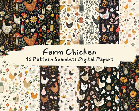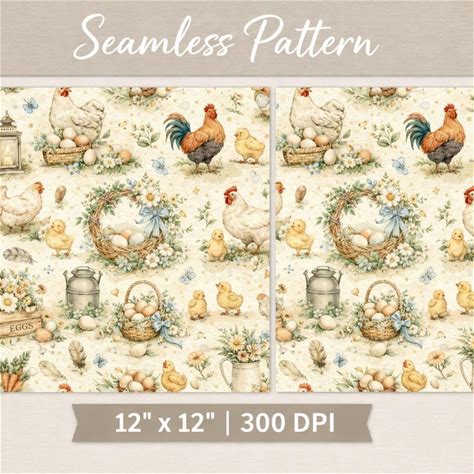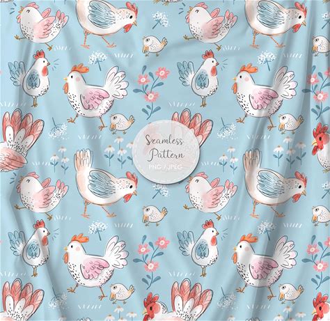 Chicken Seamless Pattern SVG, Animals Patterns, Sublimation For Fabric (PNG, JPEG, Digital Download)